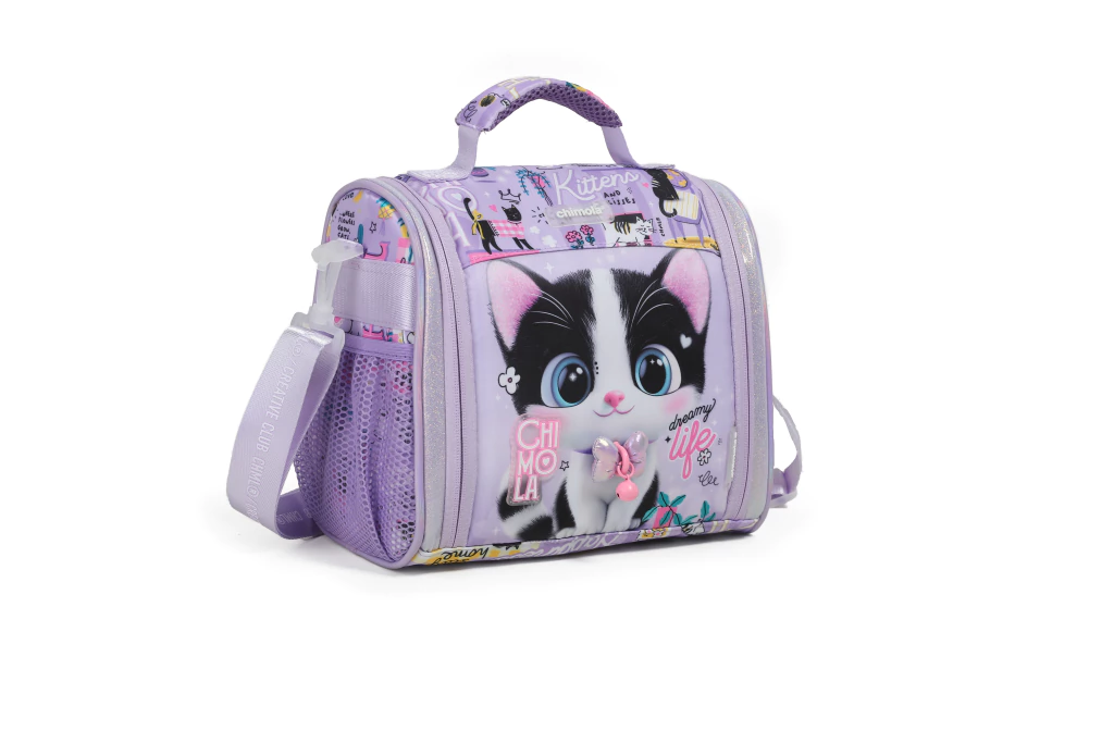 Con interior térmico para mantener la frescura de los snacks, esta lunchera cuenta con bolsillos laterales con red, apliques de goma, tiracierres con el personaje y red interna para mantener todo ordenado.