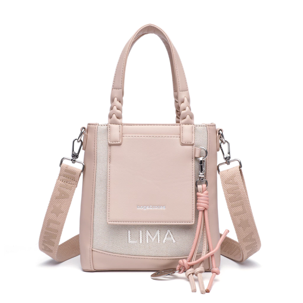 Minibag compacta y funcional, ideal para el día a día. Confeccionada en lona combinada con ecocuero, combina un estilo clásico con un aire veraniego, fresco y moderno.