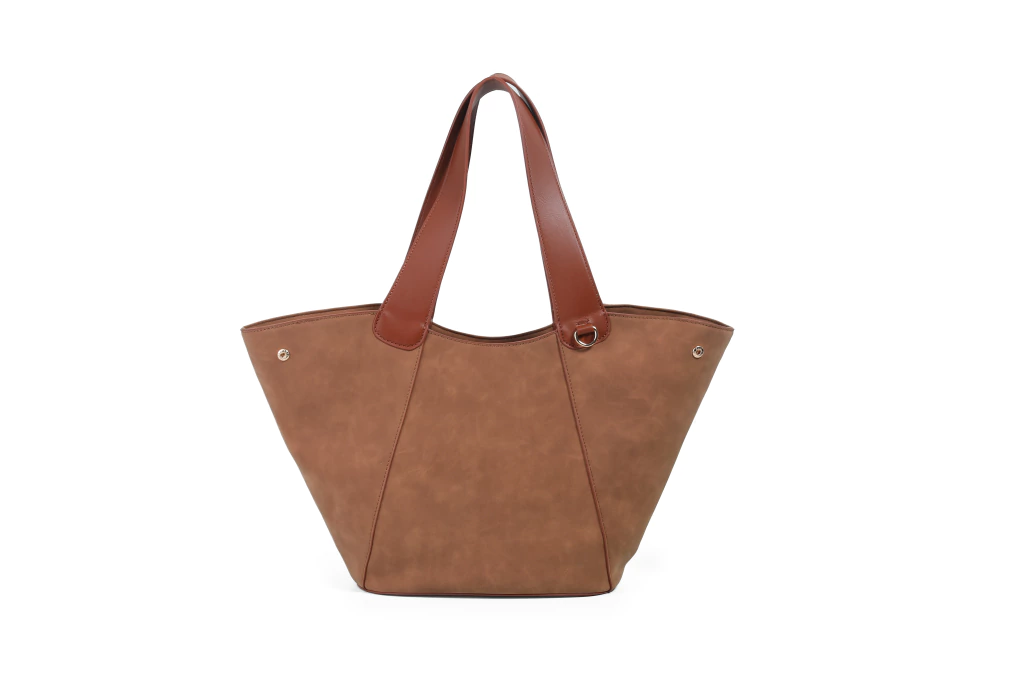 Shopper XL confeccionado en ecocuero con efecto gamuzón, ideal para mujeres de estilo clásico que desean sumar un toque relajado y moderno a su look diario. Su estructura liviana y cuerpo holgado, combinado con una base rígida, ofrece máxima comodidad sin resignar elegancia.