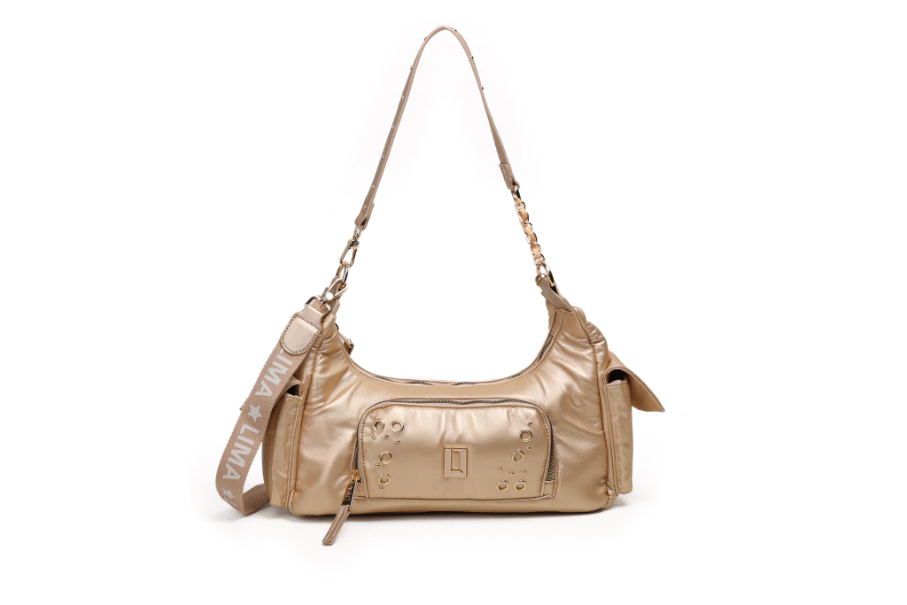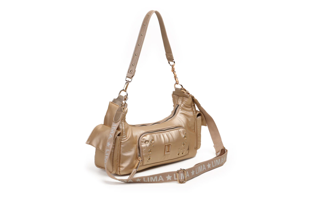 Confeccionada en ecocuero ultra suave, su efecto pillow le da una textura esponjosa y liviana. Cuenta con bolsillos exteriores prácticos para mantener tus objetos organizados y una correa ajustable que se adapta a tu forma de uso.