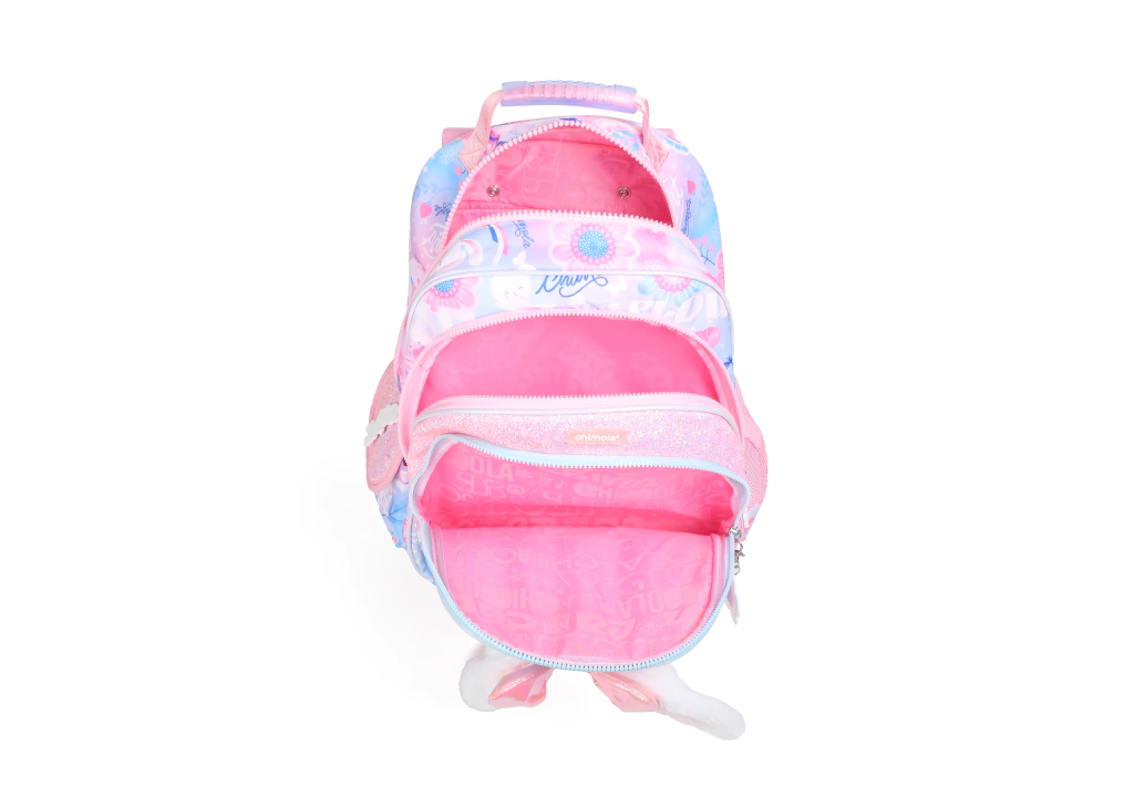 Con su moño puffer y sus brillitos que capturan la luz como pequeñas estrellas, esta mochi no solo es un aliado práctico, sino también una expresión de moda para los más chiquitos. Además, las orejas de peluche tienen alambre en su interior, permitiendo que puedan modelarse y personalizarse como más quieras.